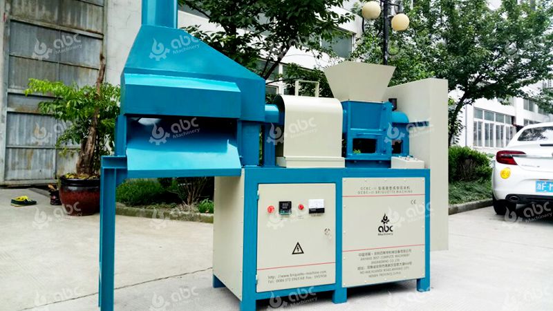 The screw briquette machine will be used here to apply a large amount of force to transform cocobut shell powder into briquettes. During the briquetting process, the briquettes would be slightly carbonized by the high temperature and high pressure. But, the entire briquettes aren’t carbonized completely because the interior of briquettes aren’t carbonized. So, the briquettes produced by this process is semi-finished charcoal briquettes.