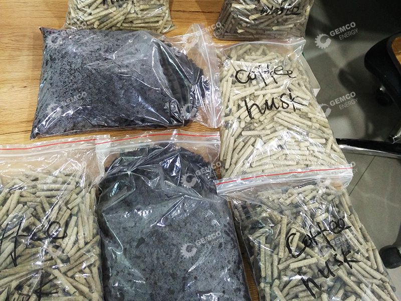 After receiving the raw material from the Indonesian customer, GEMCO factory technical workers tested the coffee shell on different data with a good result. Both of the two kinds of raw material can be made into good quality pellets by our coffee pellet making machine. Coffee ground and coffee shell can be made into high quality pellets respectively based on the actual detecting and testing. However, if they are mixed together to produce pellets, the result is disappointing. Therefore, our technician suggested that coffee ground and coffee shell can be made pellets respectively instead of mixing them together. Welcome to contact us to get the detailed test report of coffee pellet processing!