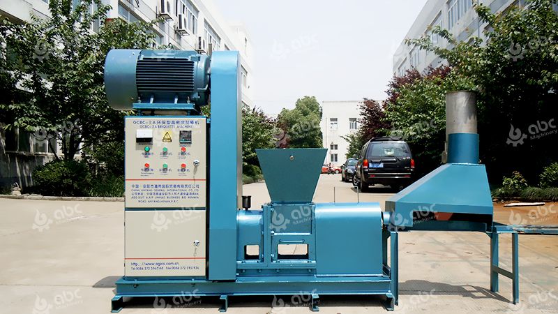 The screw briquette machine will be used here to apply a large amount of force to transform cocobut shell powder into briquettes. During the briquetting process, the briquettes would be slightly carbonized by the high temperature and high pressure. But, the entire briquettes aren’t carbonized completely because the interior of briquettes aren’t carbonized. So, the briquettes produced by this process is semi-finished charcoal briquettes.